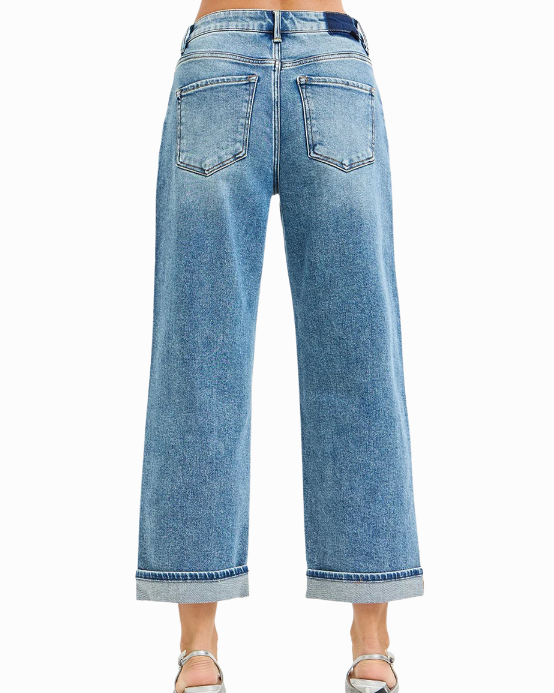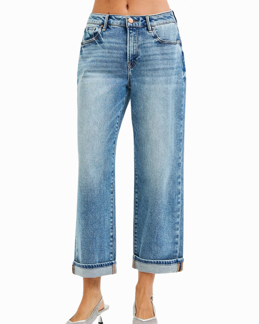 Effortlessly versatile, these Mid Rise Boyfriend Cuffed Denim Pant combine comfort stretch denim with a flattering mid-rise boyfriend fit. The rolled cuff adds a polished touch while offering flexibility—simply unroll it to adjust the inseam to your preferred length. Perfect for casual everyday wear, this adaptable style transitions seamlessly from weekend to weekday, making it an essential addition to any wardrobe.