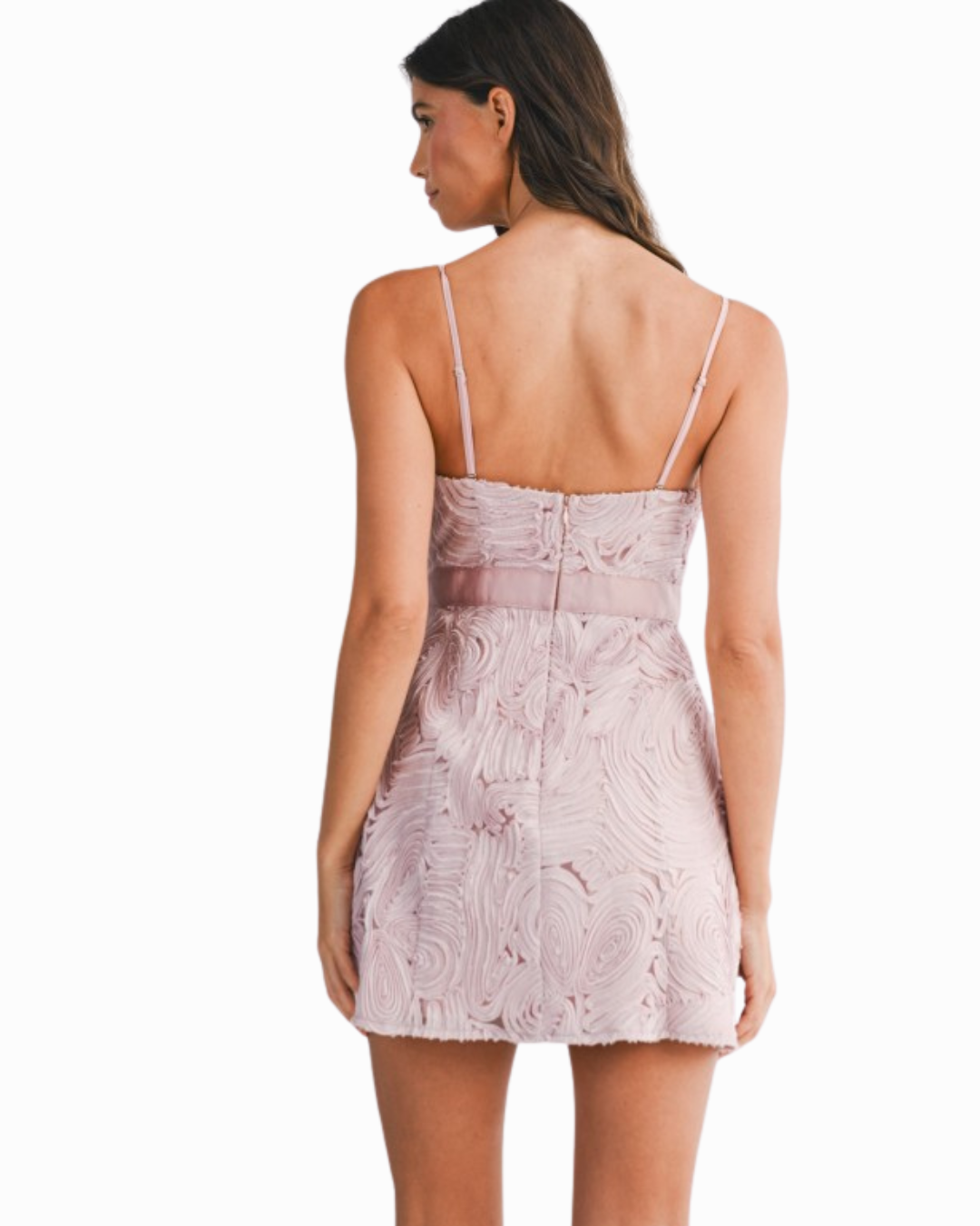 Twirl into the spotlight in this charming Textured Sweetheart Mini Dress that's equal parts sweet and sassy. The textured swirl appliqué catches the light beautifully, while the sweetheart neckline flatters every frame. Adjustable spaghetti straps (yes, they're removable!) let you customize your look, and the delicate waist bow adds that perfect touch of feminine flair. An invisible back zipper ensures a seamless silhouette, and the soft lining keeps you comfortable all night long.