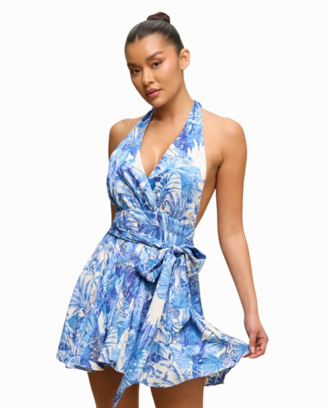 Printed Satin Halter Neck Romper