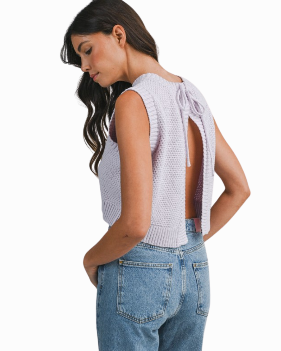 Effortless style meets modern edge with this Backless Knit Crop Top. The crew neckline and cropped cut create a flattering silhouette, while the textured knit adds visual interest. The standout feature? An open back slit with adjustable tie closure that lets you customize the fit and show off your style. Perfect for layering or wearing solo, this versatile piece transitions seamlessly from day to night.
