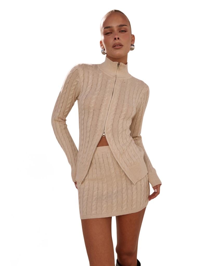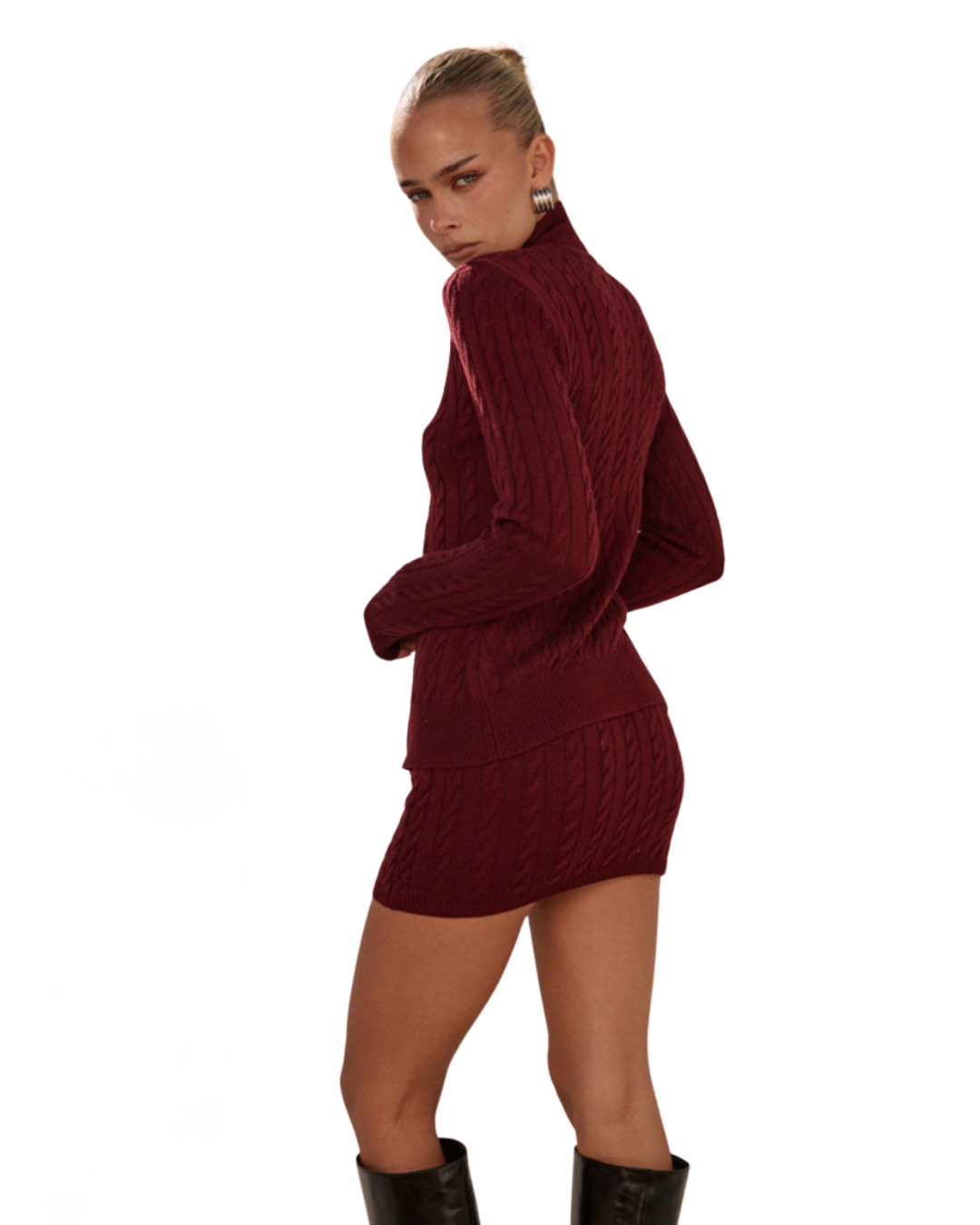 Elevate your winter wardrobe with the Katarina Mini Skirt, a sophisticated piece crafted from sumptuous cable knit fabric. This high-waisted design features a flattering mini length with an effortless slip-on silhouette, perfect for creating that coveted cool-girl aesthetic. The unlined construction with built-in stretch ensures comfort and movement throughout your day. Blend it with the matching Cable Knit Long Sleeve Knit Top.