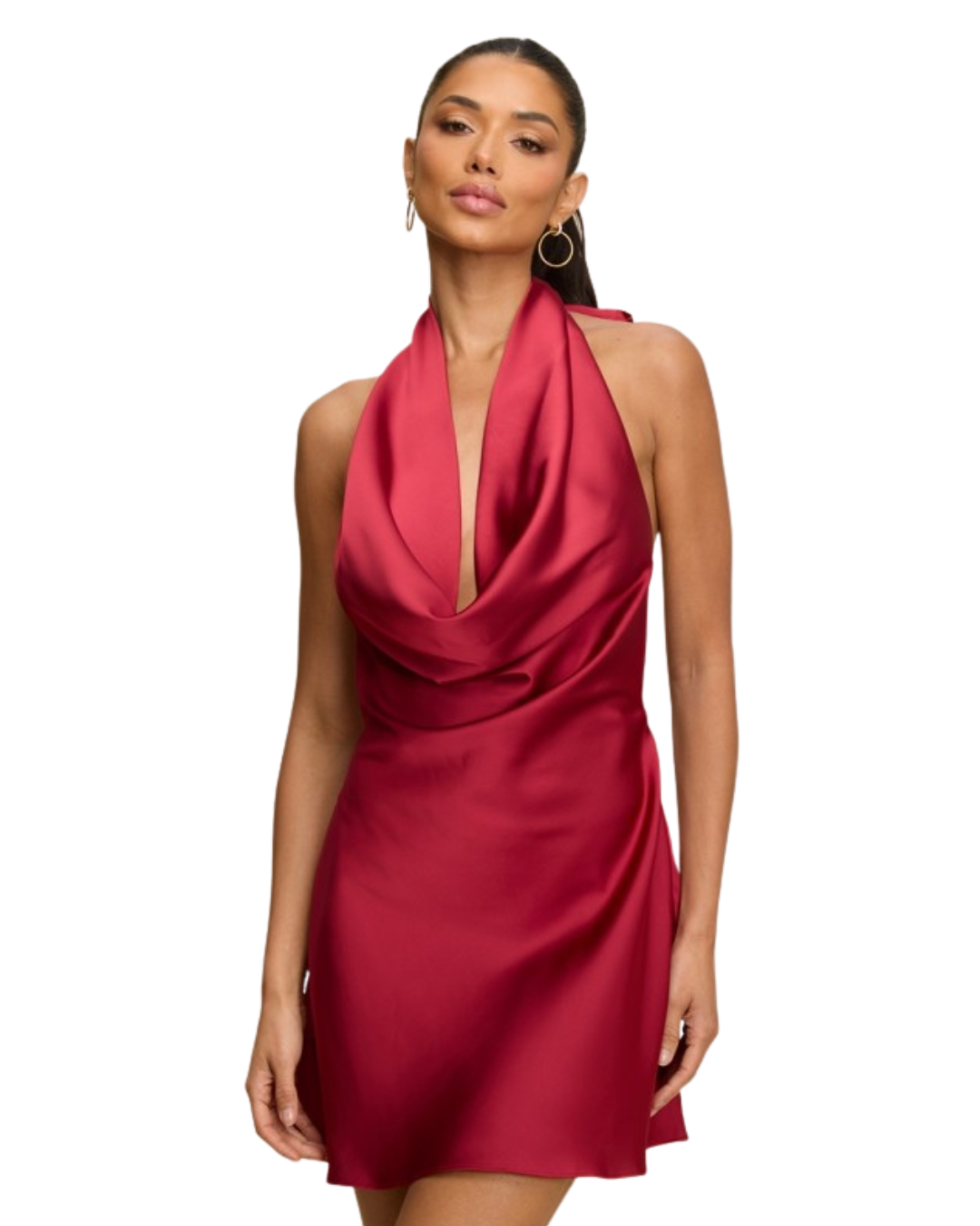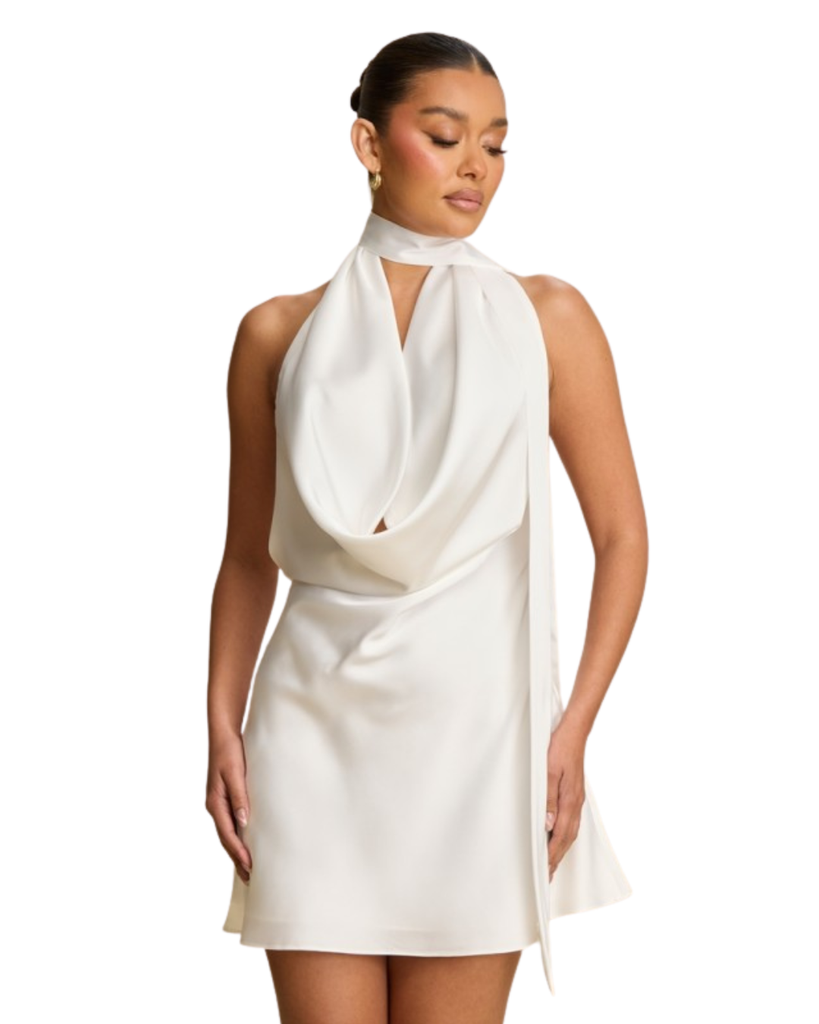 Drape Neck Satin Mini Dress