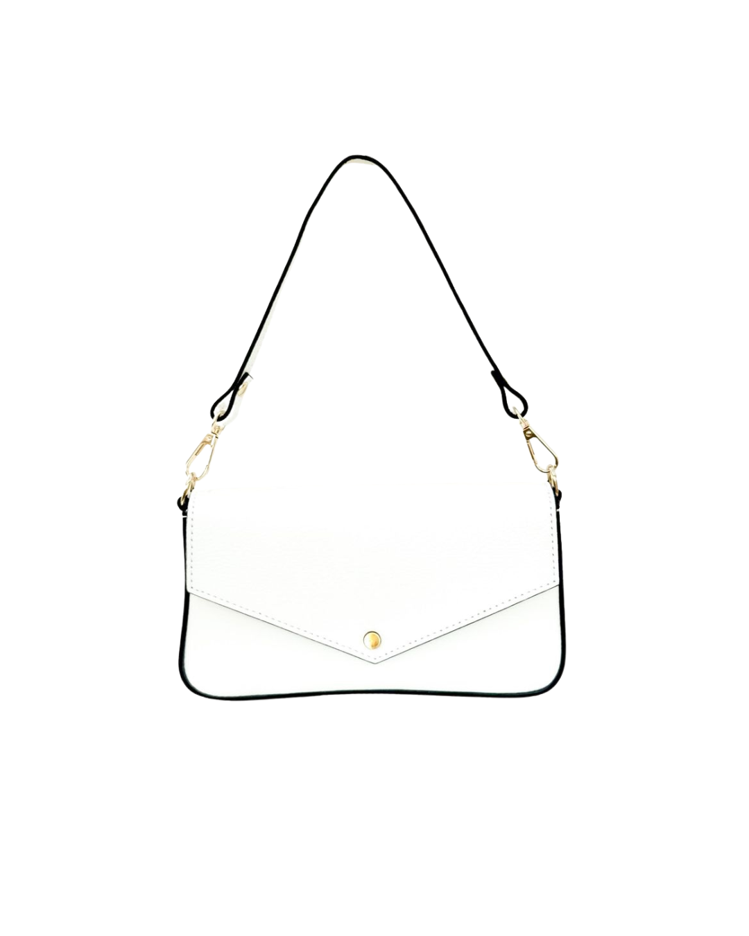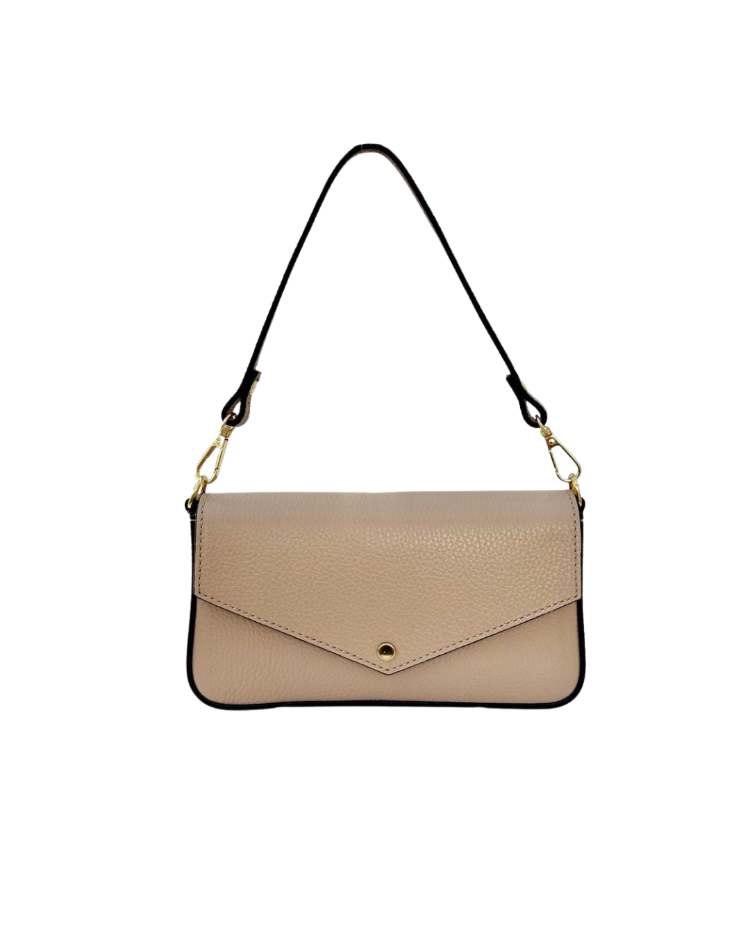 This Italian Leather Handbag features a pebbled leather shoulder strap that is removable for versatile wear options. It includes a stylish crossbody chain and a secure flap with a magnetic closure. Inside, find one interior compartment designed to keep your essentials organized. Combining elegant design with practical functionality, this handbag is ideal for both everyday use and special occasions.