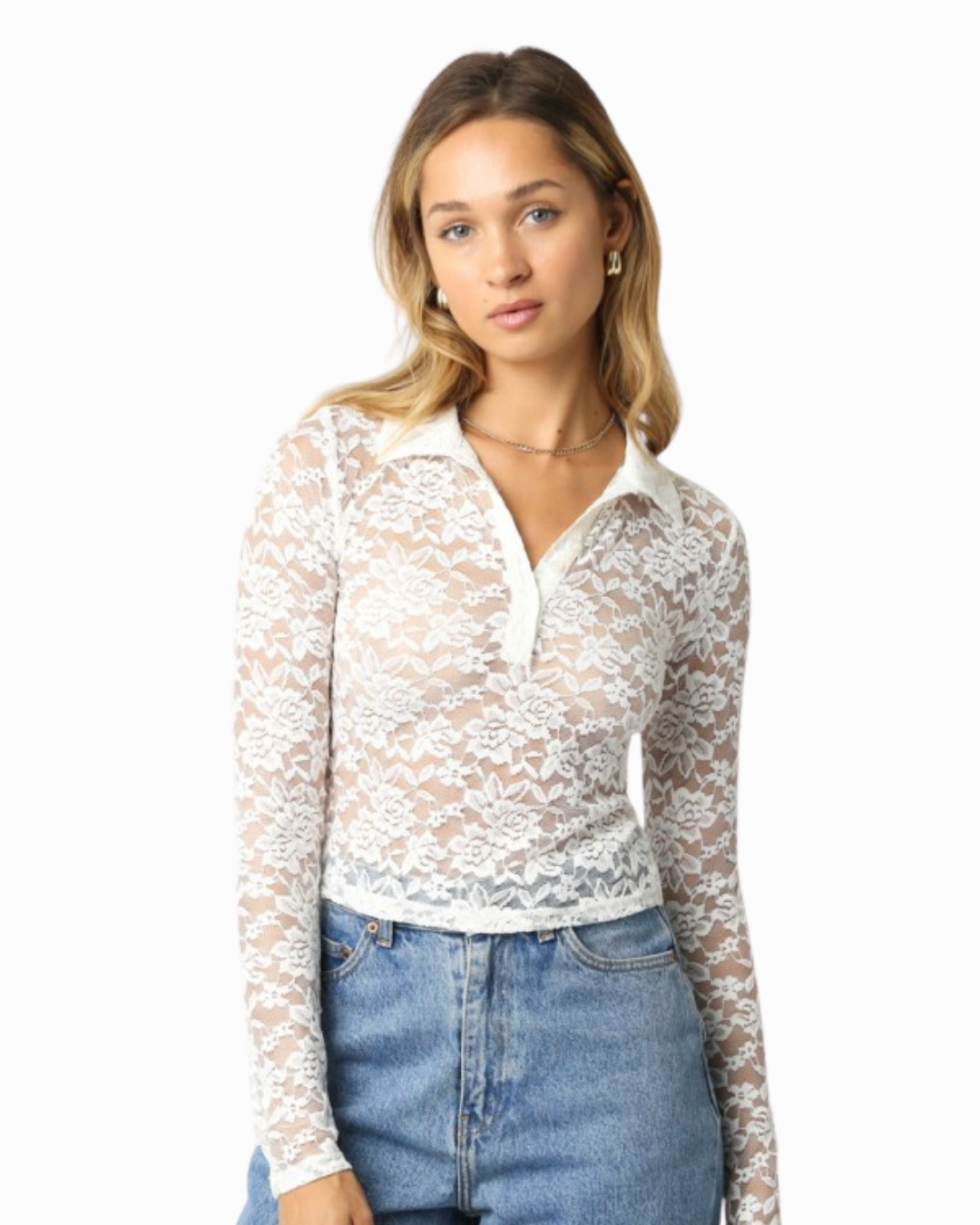 Flirty meets effortless in this cropped lace long sleeve top! The sheer lace fabric adds an undeniably romantic touch, while the half button-down front gives you easy styling versatility. Whether you layer it over a cami or wear it solo for a bold statement, this piece brings just the right amount of sass and sophistication.