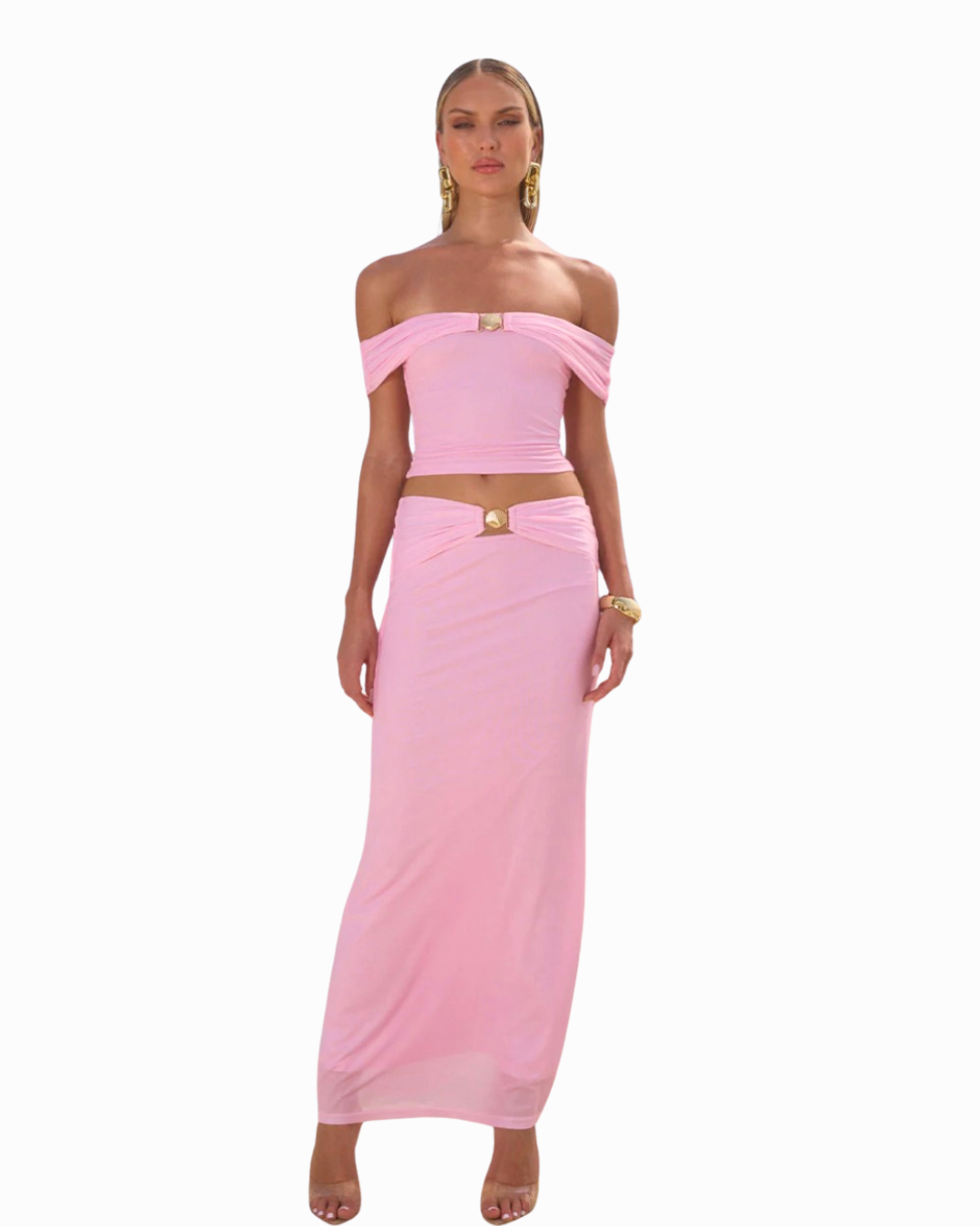 Light, fun, and undeniably feminine this Low Rise Maxi Skirt designed in a soft blush tone that flatters every complexion. Adorned with delicate seashell hardware, this piece brings a playful, coastal-inspired charm to your wardrobe. Cut in a flattering low-waisted silhouette with a flowing maxi length, this skirt offers comfort and style in one.