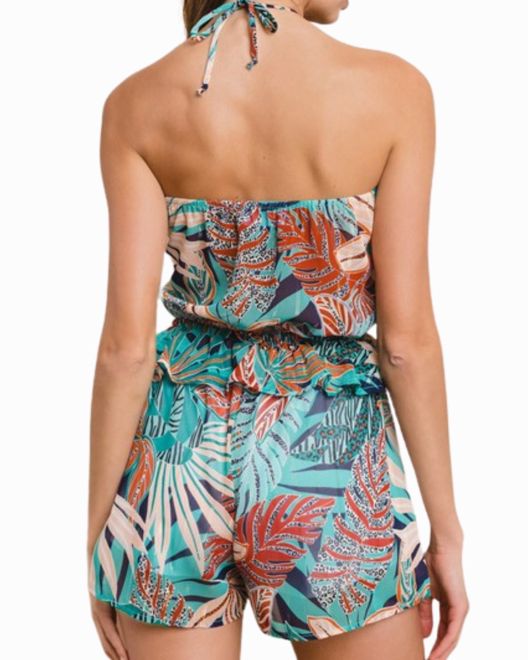 Get ready to have fun in this playful Tropical Chiffon Romper! Switch up your style with multiple wear options—rock it as a halter or transform it however your mood strikes. The sheer chiffon top brings that breezy, carefree vibe while the built-in short lining keeps things practical. Crafted right here in the USA, this versatile piece is your ticket to effortless, flirty looks that work from day to night.