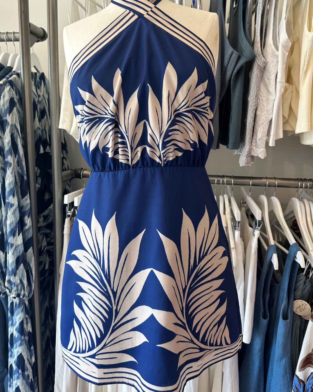 Turn heads in this eye-catching halter neck mini dress featuring a vibrant printed pattern. The tie-back halter design offers a flattering, adjustable fit while the short hemline keeps things playful and modern. Perfect for summer outings, casual dates, or nights out with friends. The bold print adds personality to any occasion.