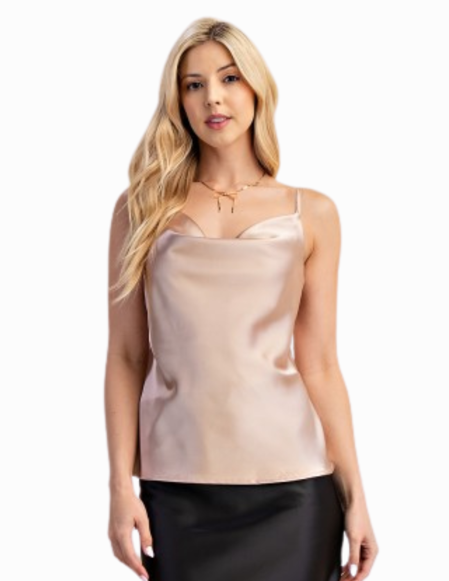 Elevate your wardrobe with this luxurious Satin Cowl Neck Top, featuring adjustable straps for a customized fit. The fluid drape of premium satin creates an elegant silhouette perfect for both casual and sophisticated occasions. The graceful cowl neckline adds a touch of refinement, while the adjustable straps ensure comfort throughout your day. Versatile enough to layer or wear solo, this timeless piece transitions seamlessly from day to evening wear.