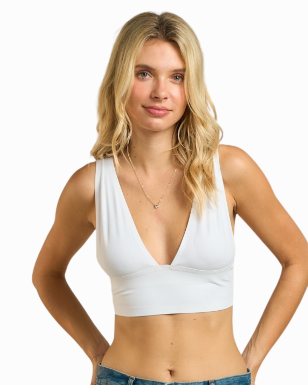 Experience comfort and confidence in this seamless deep V-neck crop tank, engineered to move with your body in a supportive second-skin fit. The flattering V-neckline pairs beautifully under any garment.